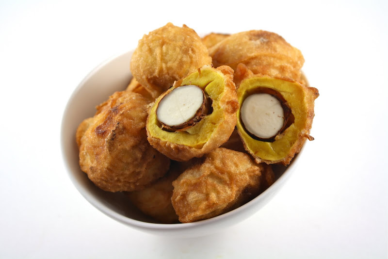 Have you seen this type of fruit before? Well, this is an exotic fruit called Cempedak. It’s popular in Southeast Asia, particularly in Malaysia. The size of the Cempedak fruit is much smaller than the more well known Jackfruit. The texture of the Cempedak flesh is soft, sweet, and has a strong aroma. They can be eaten fresh; but, they tastes much better in fritters. Deep-fried Cempedak Fritters are commonly sold in the streets of Malaysia.