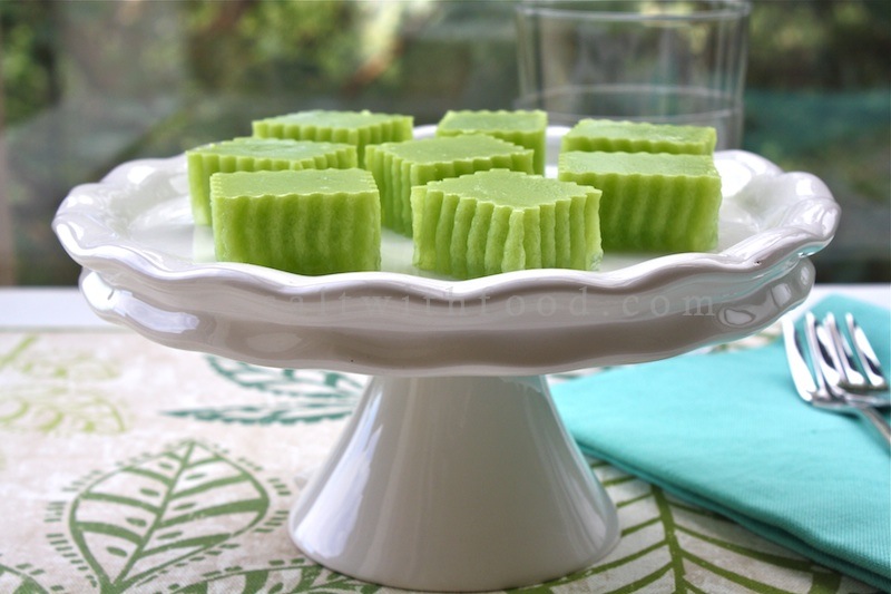 This is a recipe for Pandan or Pandanus Jelly dessert. The enticing light green color of the jelly is made from the essence of pandan leaves. Again, it’s a very light and refreshing agar agar (meaning jelly in Malay) based dessert. If you like the pandan fragrant, then, I am certain you will enjoy this jelly very much.
