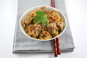 Cook the rice as per the cooker instructions. Serve the rice with crispy shallots, dried shrimps and top with some coriander leaves.